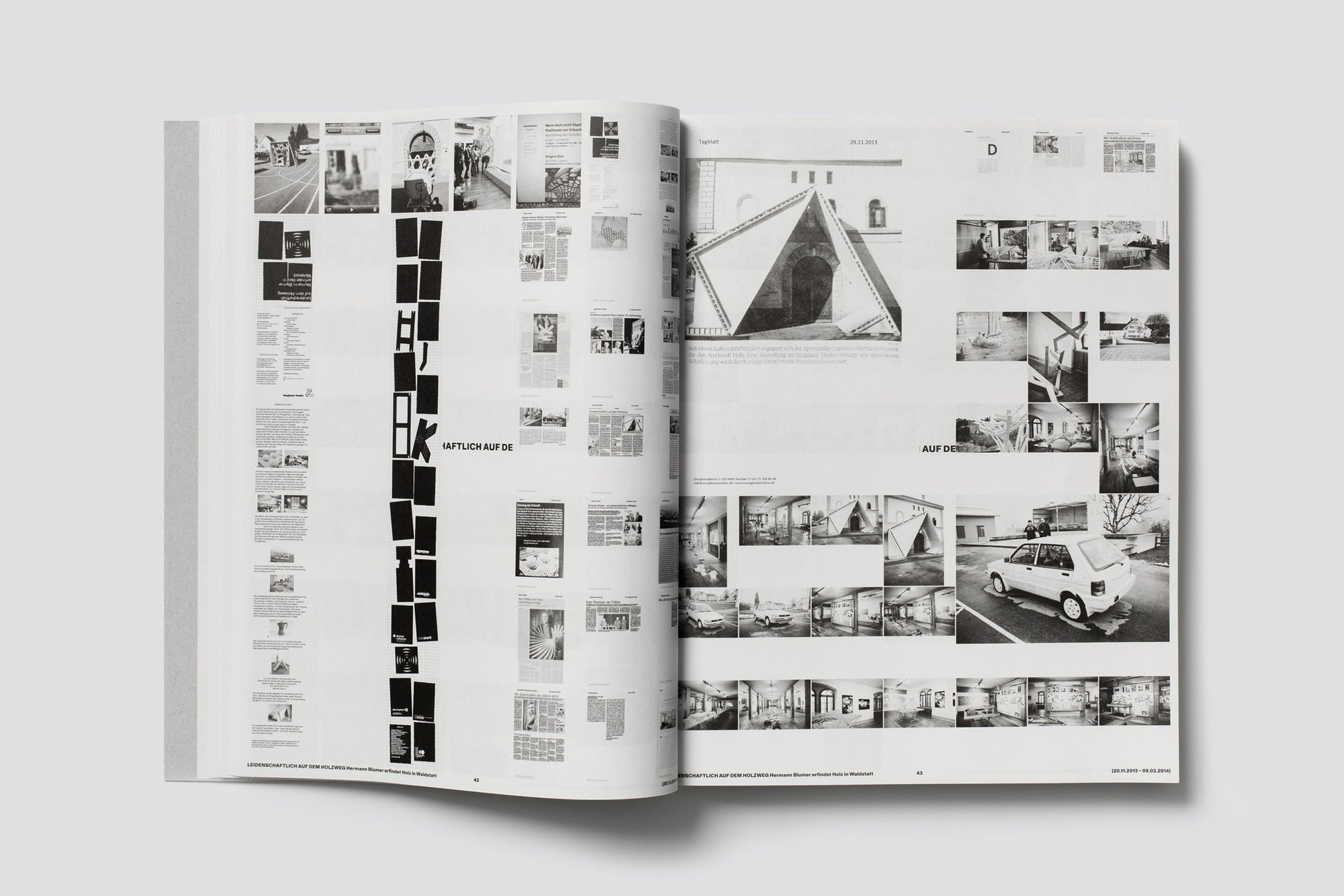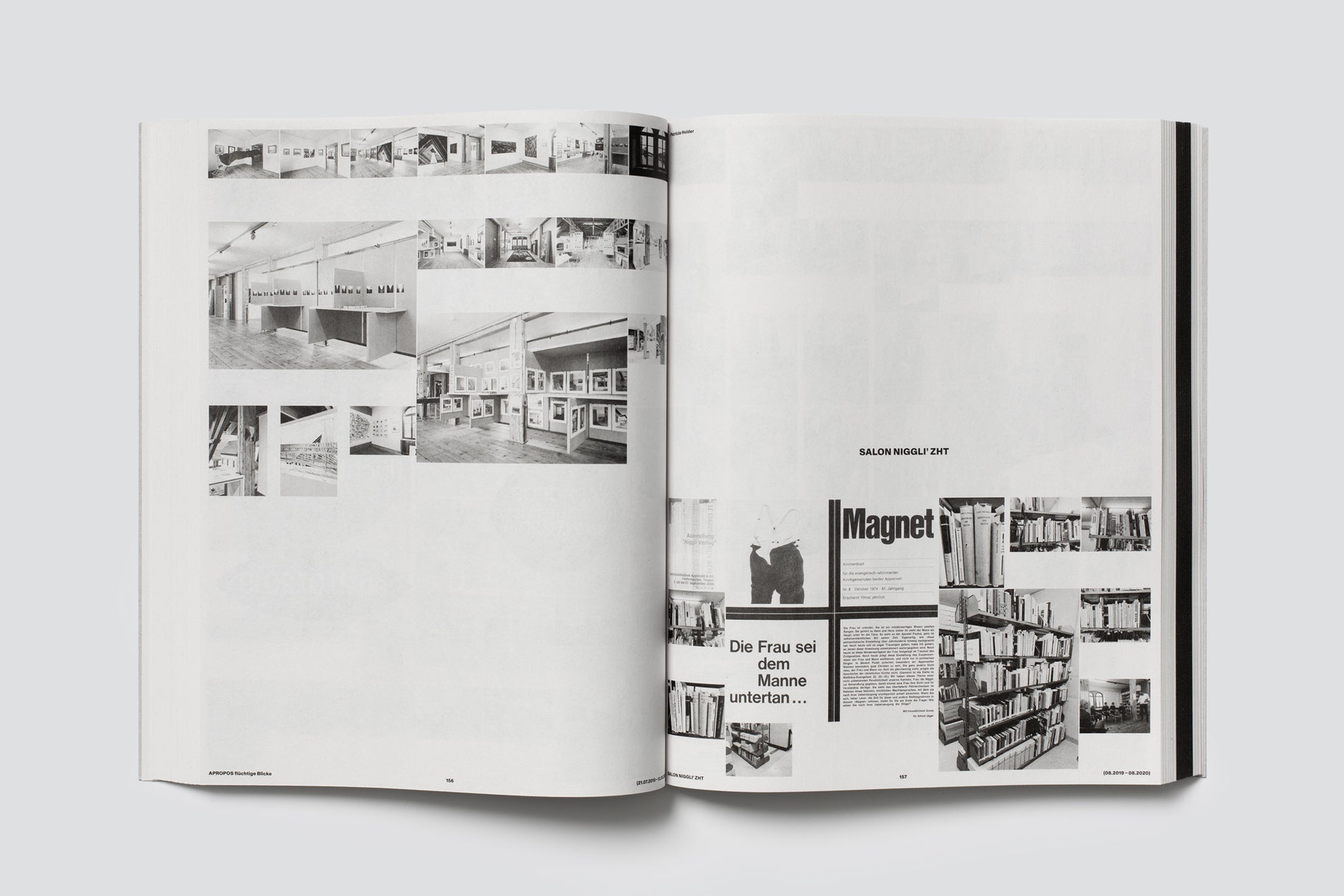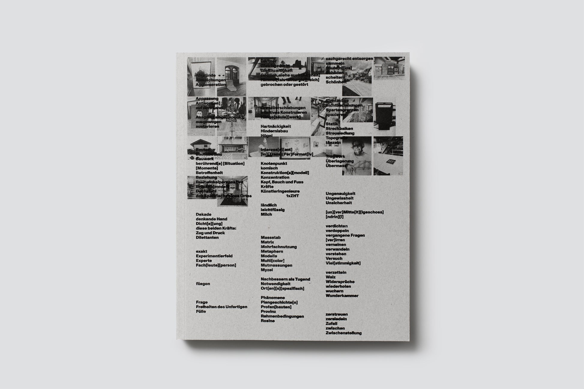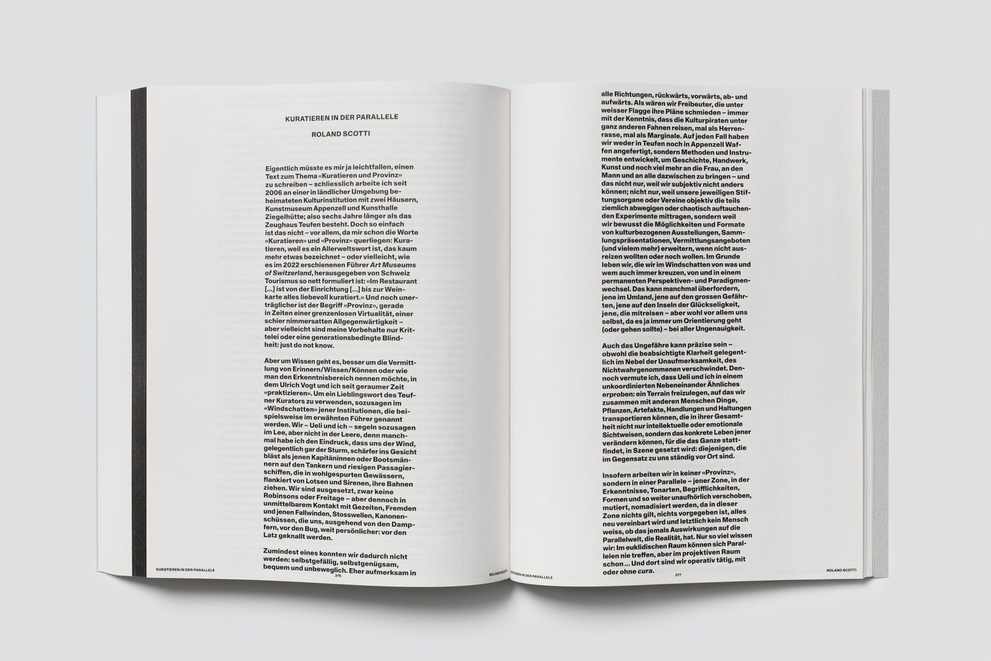 1xZHT summarizes the ten-year work and activities of curator Ueli Vogt at the Zeughaus Teufen. In a condensation of images, most of which he took himself, and of press articles, postcards, posters, invitation cards and documentary photography, the first part of the book shows Ueli Vogt’s working method. He uses the exhibition format (and novel formats such as the ‘Zwischenstellung’ or in-between positions) as a method of investigation, sees chaos as an opportunity, uses dilettantism passionately and finds that coincidence is a gift. The pictorial grid in the book appears ornamental, seems to be strict, but then very imprecise and chaotic – individual exhibitions become one big one or an intuitive continuum that resembles surfing on an endless wave.
