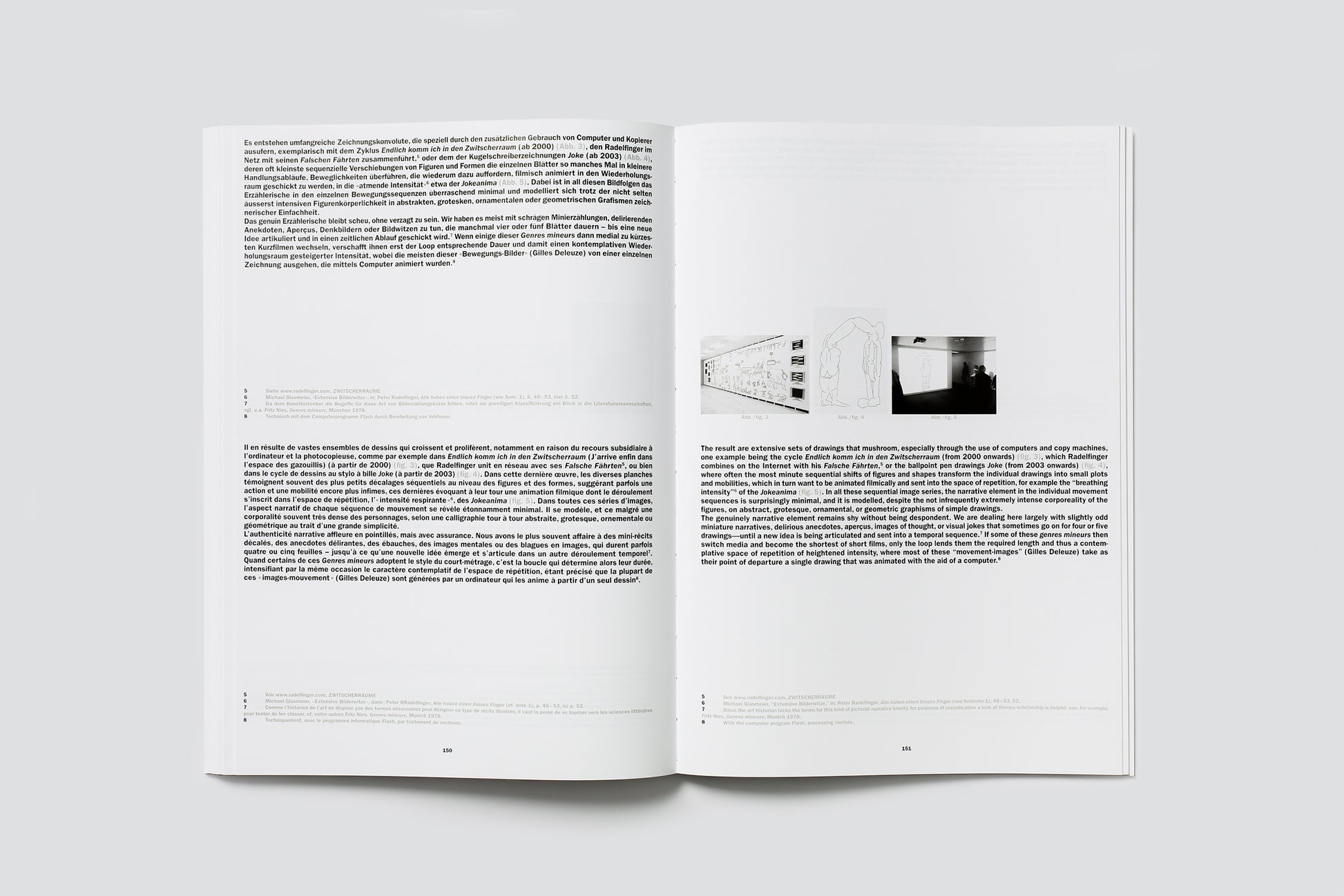 The publication Aah ... Aha! Albumatlas by Peter Radelfinger brings together 1562 works from the artist’s ongoing image research Aah ... Aha! in small format of 5.8 x 4.1 cm. On the occasion, Michael Glasmeier has written a rambling text entitled Aah ... Aha!gressions. Both artist and author understand the book as an independent work, which continues the thinking and research character of the drawing cycle and makes it visible and experienceable in its entirety.