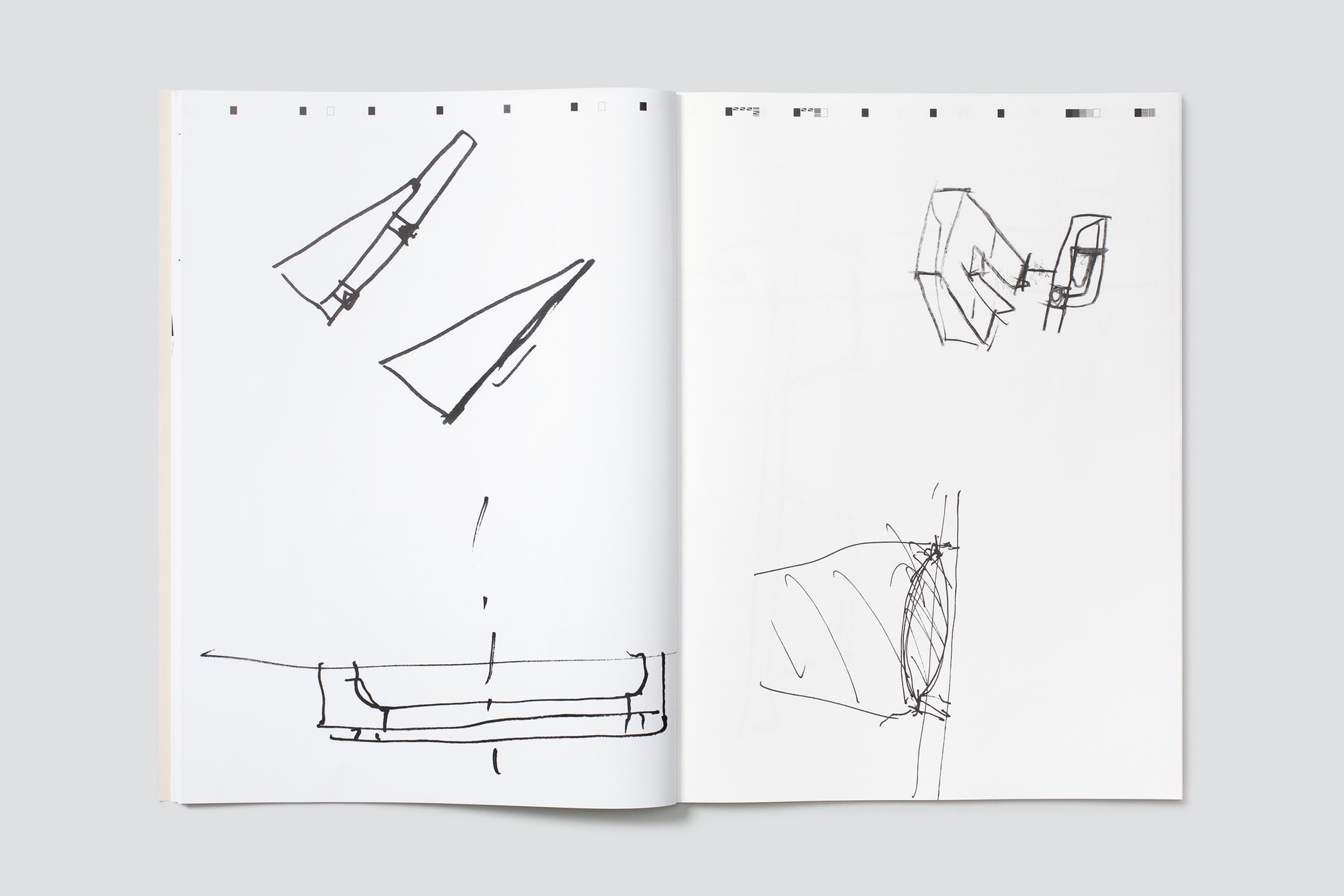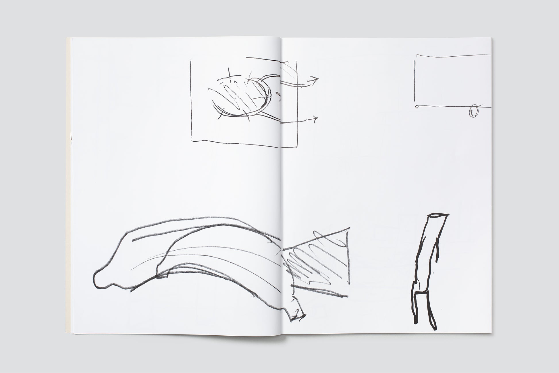 This publication is the result of a collection of such quick sketches. Stefan Inauen, one of the workers at the Kunstgiesserei St.Gallen, collects some of his colleagues’ drawings. He does this occasionally, before they end up in the trash, and he keeps them in a pile, and later in an envelope. It’s a spontaneous collection of little snippets, post-its, drawings on photographs or the backs of business cards, or occasionally scraps of the paper tablecloth from the cafeteria. Inauen keeps collecting slowly, but steadily, without much of a purpose, but maybe just in the same way the sketches have come to be in the first place: without much ado, without a specific purposefulness. It’s a charming way to represent the attempt of communication between two people, the attempt to explain something and to understand each other. It’s a very simple, human interaction between you and me, or me and you, with the help of a pencil. A selection of items from Inauen’s collection is reproduced in this publication. This is done without much explanation of what kind of artwork or artist’s project the sketches were intended to help build. They are not just a tiny step in the process of the production of a great artwork, but are presented here as autonomous and brilliant drawings, which they truly are.