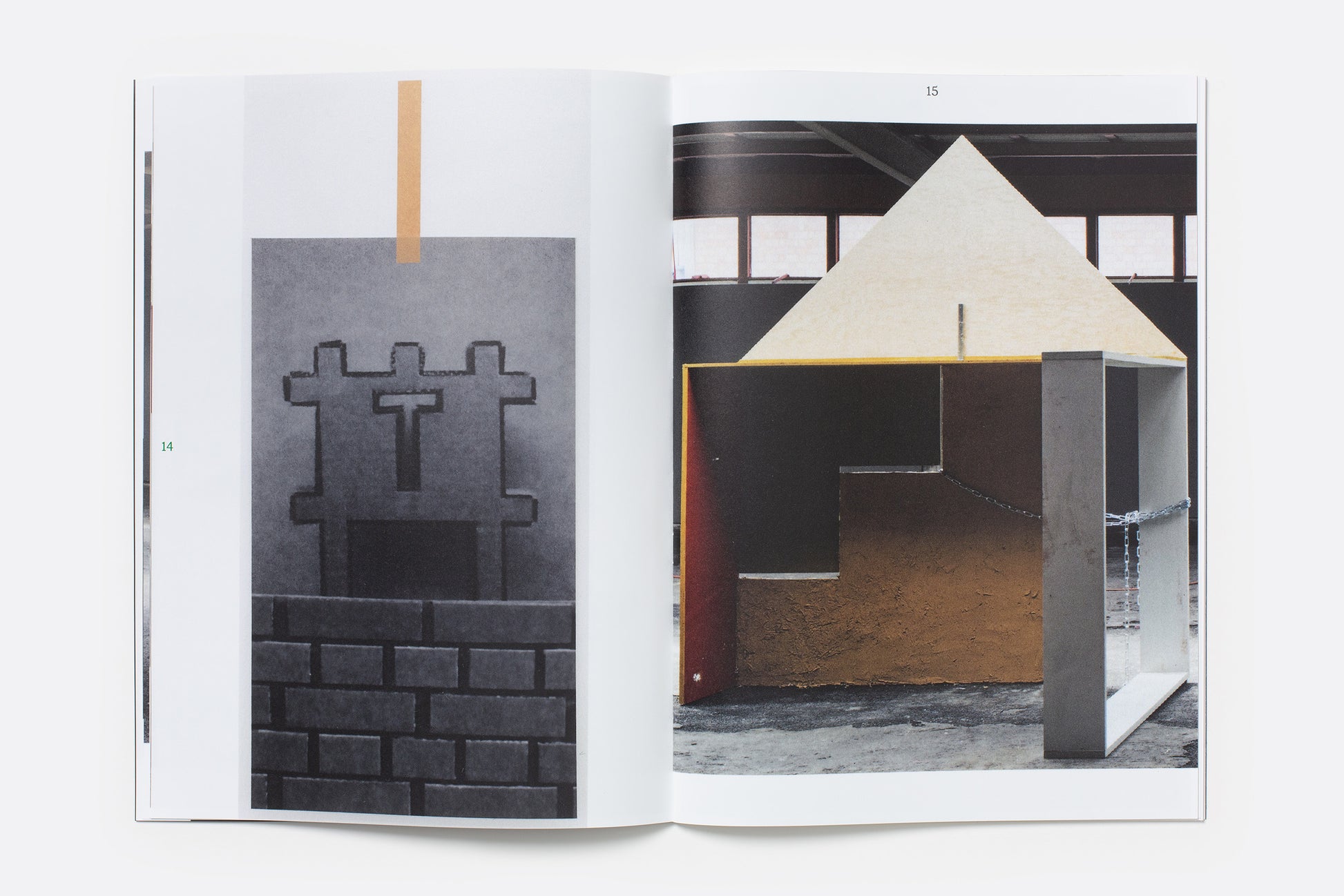 Patricia Bucher’s Cahier, entitled “How birds can keep you from marrying the wrong person”, presents her unique visual language. The book showcases her sculptures, which consist of simple, mostly orthogonal contours and sometimes contain an oblique at a 45-degree angle. Her chosen proportions provoke, breaking accepted architectural norms and taking them ad absurdum. The publication plays with the disrupted perception of proportions in her work. It consists of three parts: Part I presents the sculptures that Patricia Bucher has shown at exhibits in recent years. Part II includes a text by Claudius Fruehauf, the index and the imprint. Part III is dedicated to Patricia Bucher’s drawings.