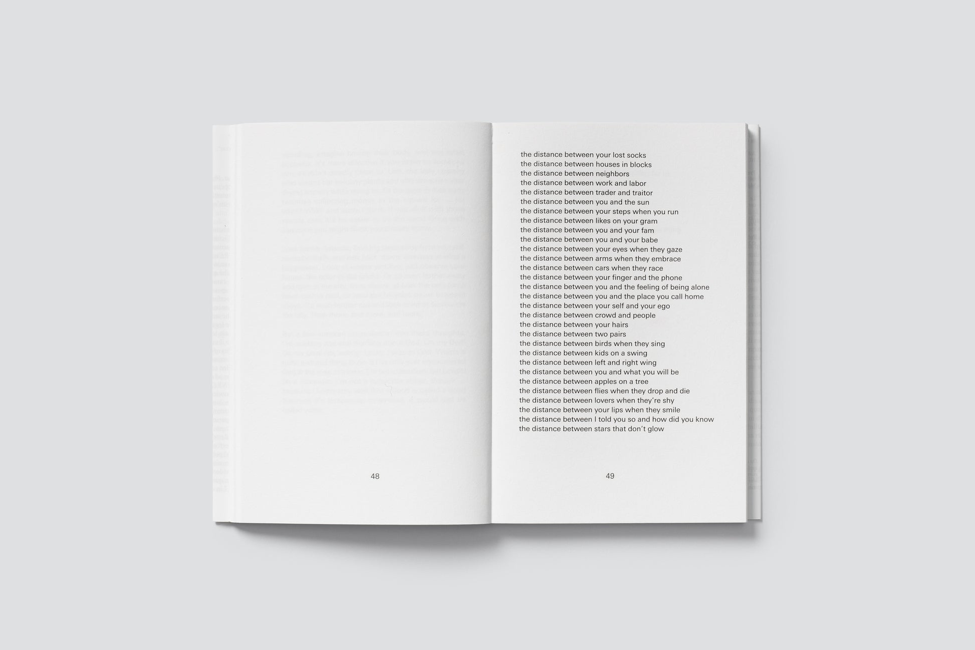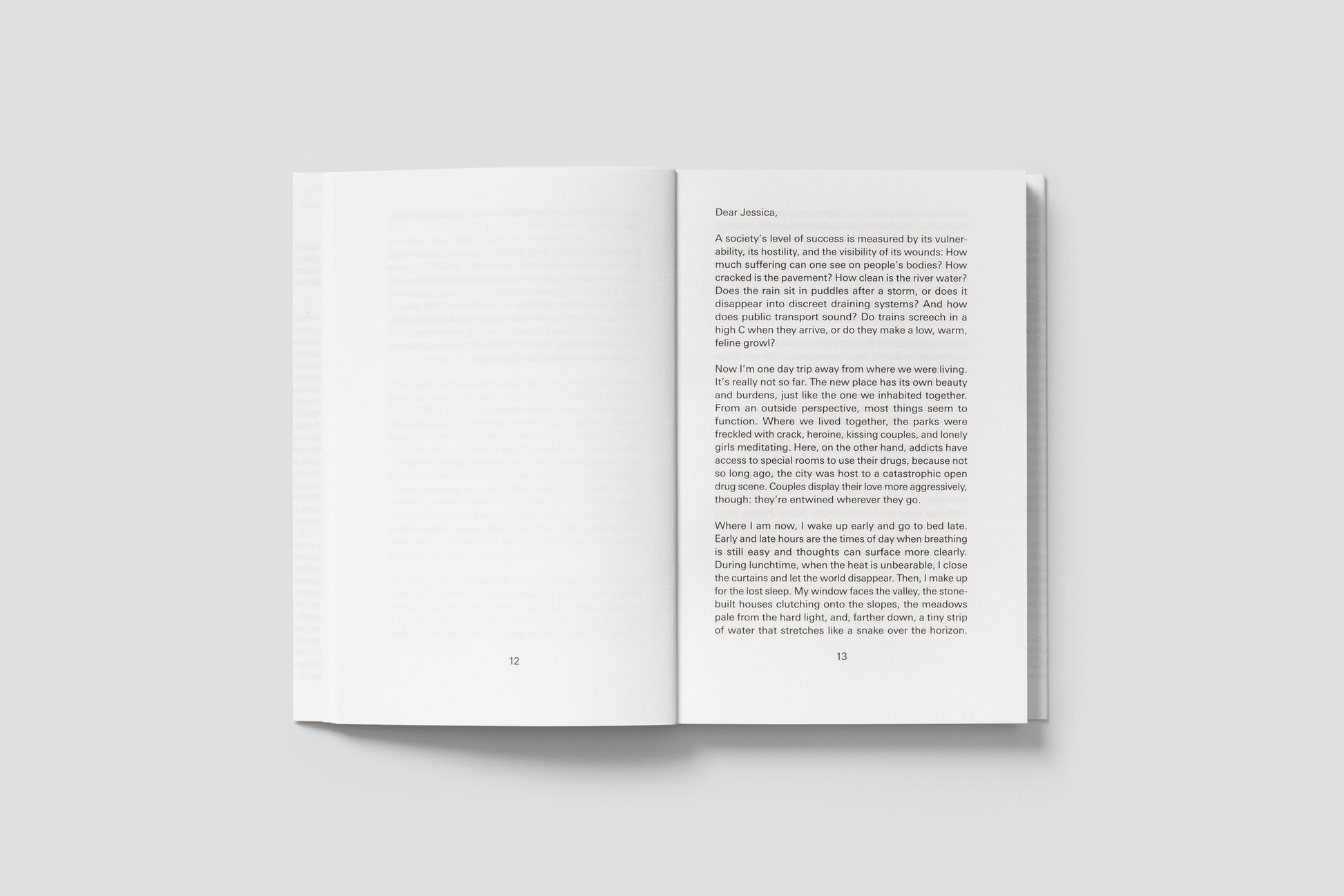 The publication Jessica Jessica Jessica contains texts that Johanna Kotlaris has written for various contexts over the last six years. She connects texts through a narrative framework that she writes from a fictional first-person perspective. These are letters that she writes to Jessica and serve, among other things, to link various texts together. Jessica is an empty Instagram profile (0 followers, 0 following and no posts) that has been meticulously tracking Johanna’s activity on the same platform for some time. Since it is not clear who Jessica is, she becomes a projection screen for ever-changing people. The imaginary relationship with Jessica thus changes in the course of the writing: from curiosity to longing, indifference to discomfort at being constantly observed. At the same time, Johanna Kotlaris confides in Jessica and contextualizes the texts written in the past and newly compiled in this book. The result is a narrative that fluctuates between reality and fiction and continues to reflect on the nature of interpersonal relationships, analyzing, examining and testing them and thus constantly laying out new orders.
