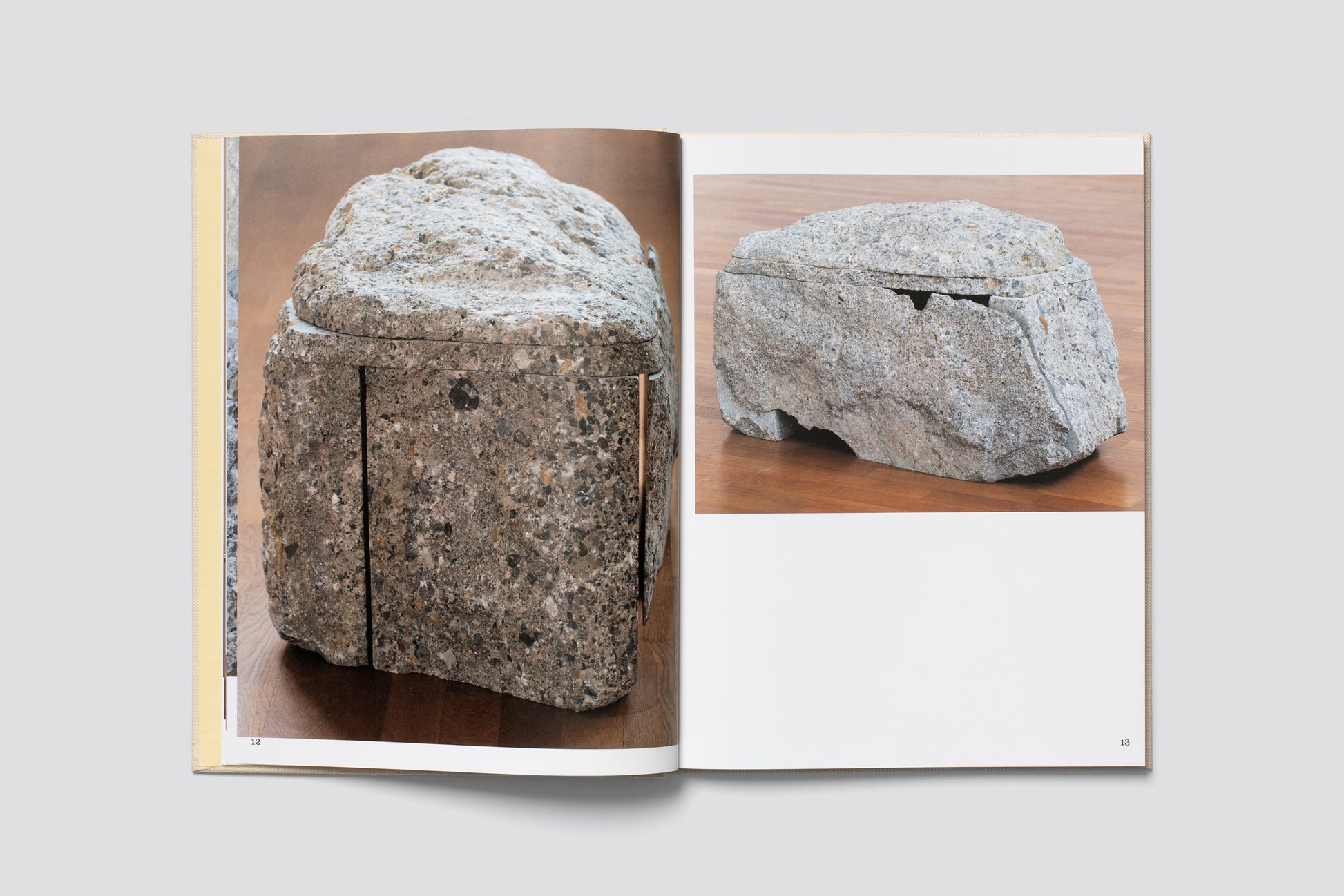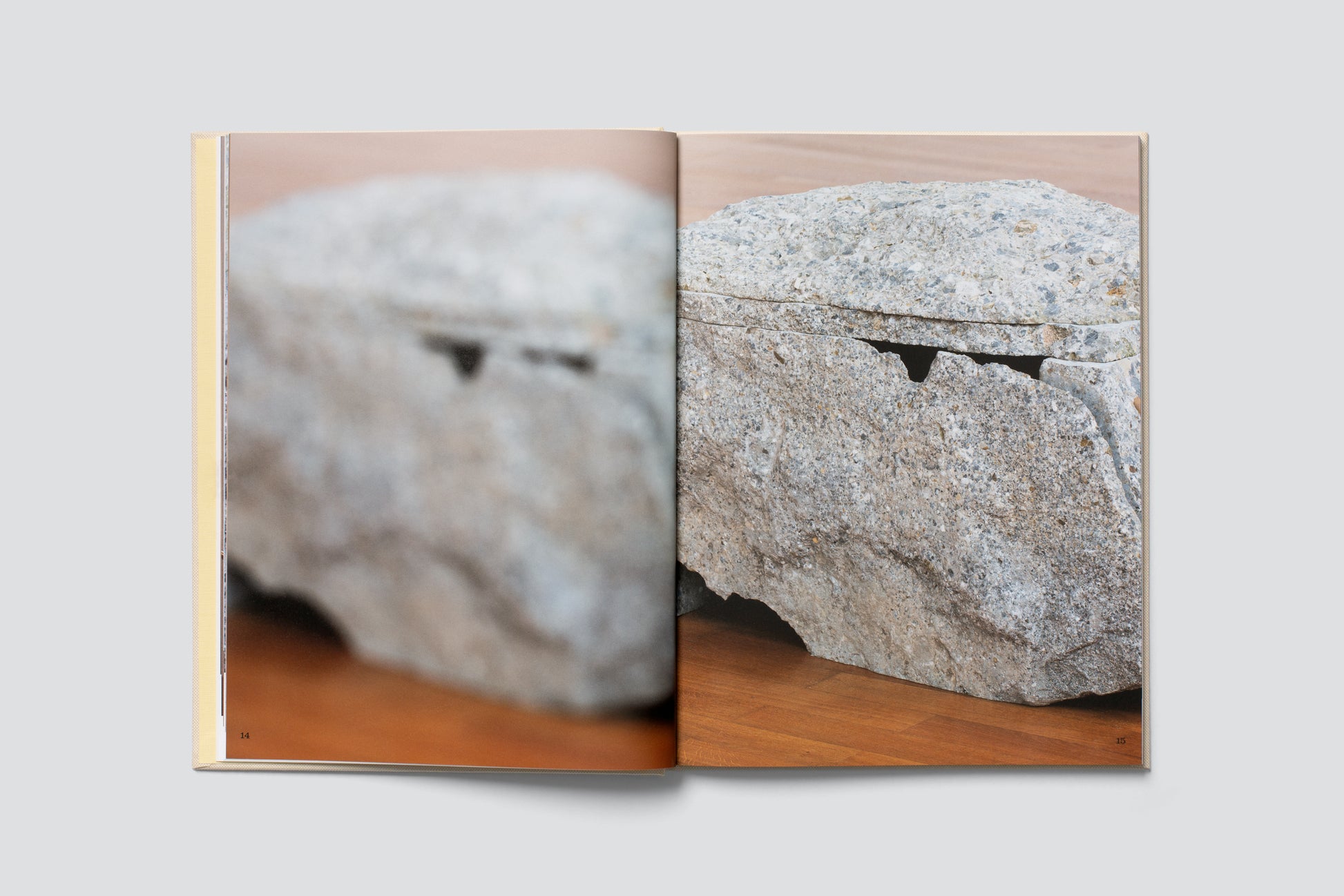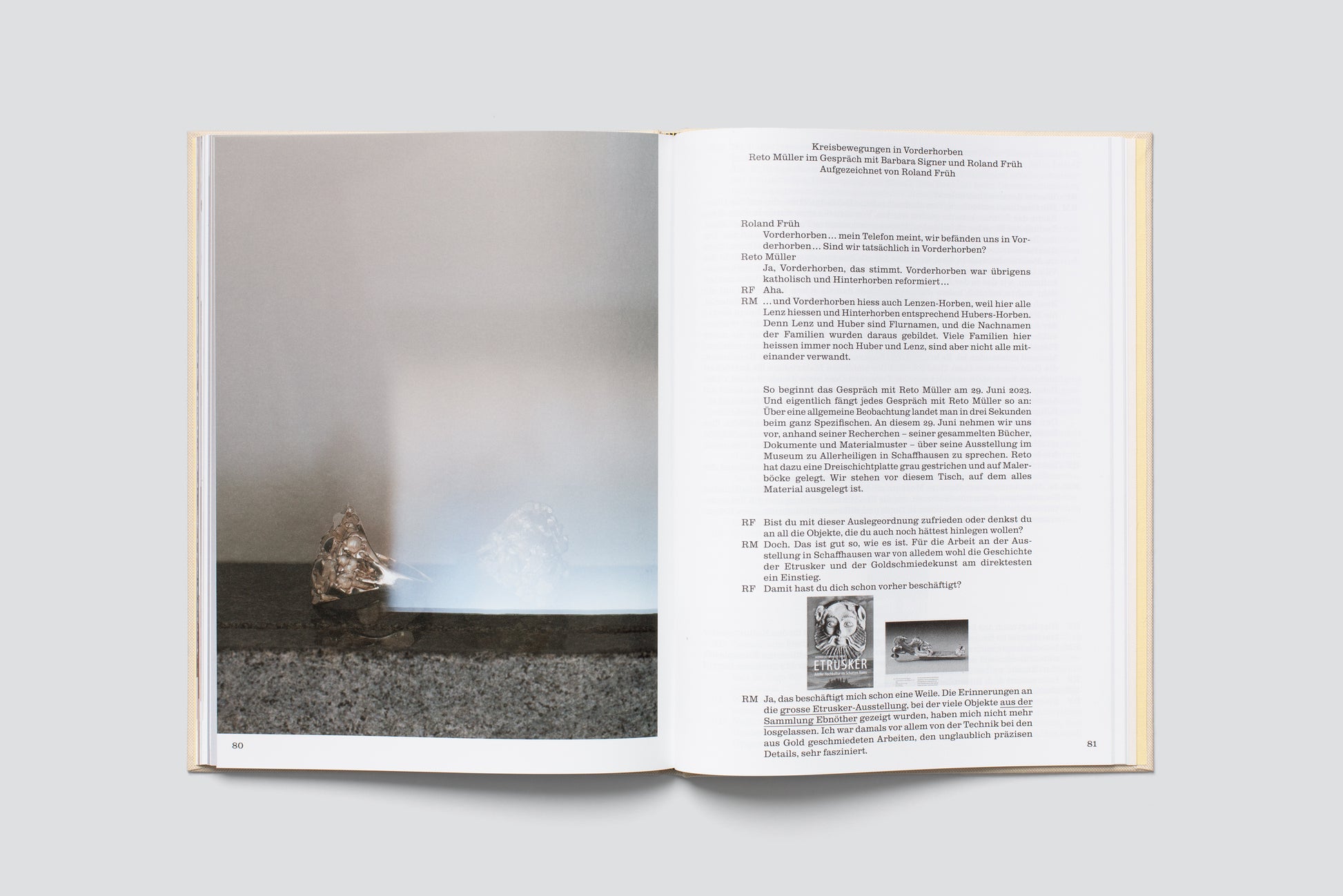 With the exhibition Le nombril du monde at Museum zu Allerheiligen in Schaffhausen, the artist creates a vast imaginary field, a space of possibilities between geology, local mythology, and industrial history, between intention and chance, snapshot and narrative. The eponymous catalog serves as an extension of the exhibition. In a conversation with Roland Früh and Barbara Signer, Reto Müller discusses various references, interests, and the connections and links within his practice. A text by Isabelle Köpfli reflects on his work from a curatorial perspective. The photographs, captured by Sebastian Stadler, are arranged to take the reader on a narrative journey through the museum, challenging the typical conventions of an exhibition catalog.