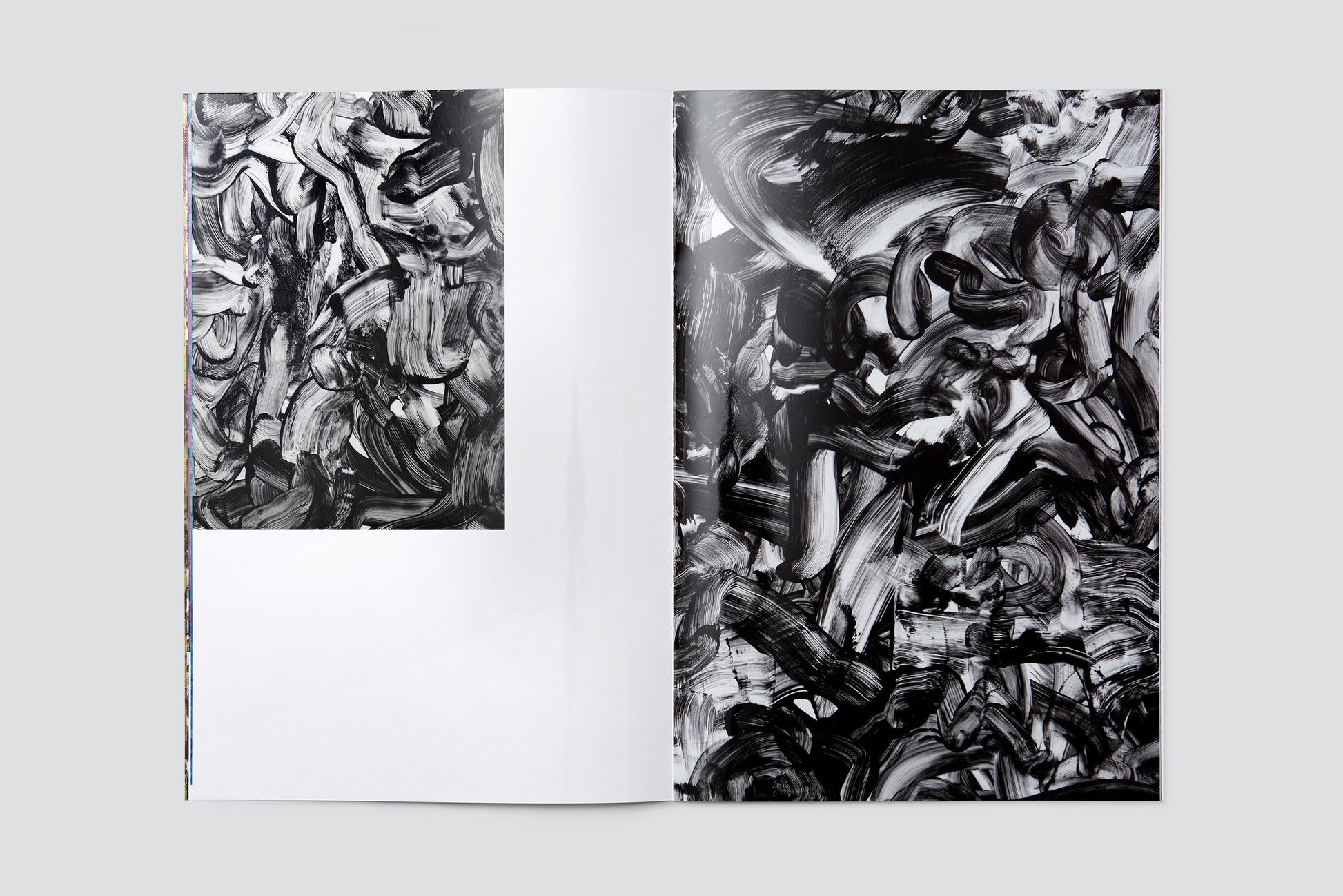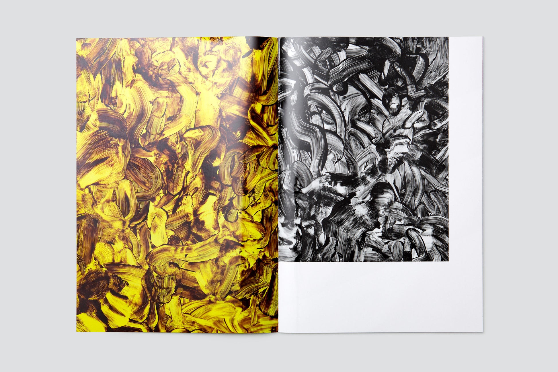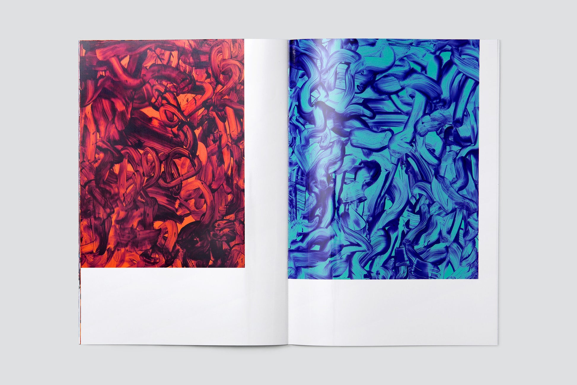 Fabio Marco Pirovino explores the boundaries and possibilities of imagery. For the exhibition Reality (15 October – 12 December 2016) at the art space epepep in St.Gallen, the artist realized a series of his typical “scribble paintings”: abstract, gestural paintings, layered traces as dormant records of dynamic processes. Pirovino painted twenty-one PVC films of different sizes, applying the monochrome paint directly with his hands and fingers. The artist nailed these object-like substrates to sprayed canvases with the painted side facing inward so that the surface of the works has a mirror-like appearance. The artist’s book Reality Pirovino is a continuation of the exhibition. The full-scale reproductions were cropped in the layout, and the canvases and nails are invisible. This captures the screen-like quality of the works, which is emphasized by the sheen of the book pages with a UV coating.